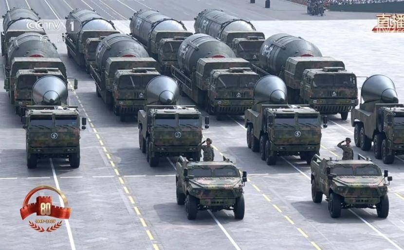 2025年9月3日上午9时,金色的朝阳穿透云层,将广场镀上一层庄严的光辉。数十万群众手持国旗肃立,全球超过200家媒体的镜头聚焦于此——这场纪念抗日战争暨世界反法西斯战争胜利80周年的盛大阅兵,不仅是中国力量的展示,更是对和平信念的全球宣言。在轰鸣的战机编队与铿锵的徒步方阵之后,最引人注目的莫过于压轴登场的战略导弹方队。其中,采用分导式多弹头技术的东风-5C液体洲际导弹犹如钢铁长城般缓缓驶过,其长达32米的庞然身躯在阳光下泛着冷冽金属光泽;而首次公开的东风-61陆基机动洲际导弹则以全地形发射车的姿态亮相,六轴越野底盘彰显出无与伦比的战场生存能力。这些\大国重器\凝结着中国航天人七十载心血,成为捍卫国家主权与全球战略稳定的定海神针。