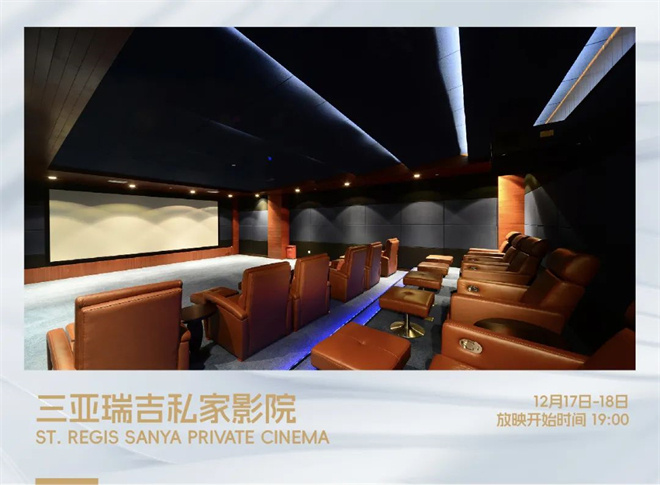 12月17日-18日,第五届海南岛国际电影节系列嘉年华活动将在三亚亚龙湾瑞吉度假酒店私人影院开展。瑞吉私家影院位于三亚市吉阳区亚龙湾国家旅游度假区瑞吉度假酒店一楼,毗邻酒店儿童乐园,同步放映时下院线热门影片。